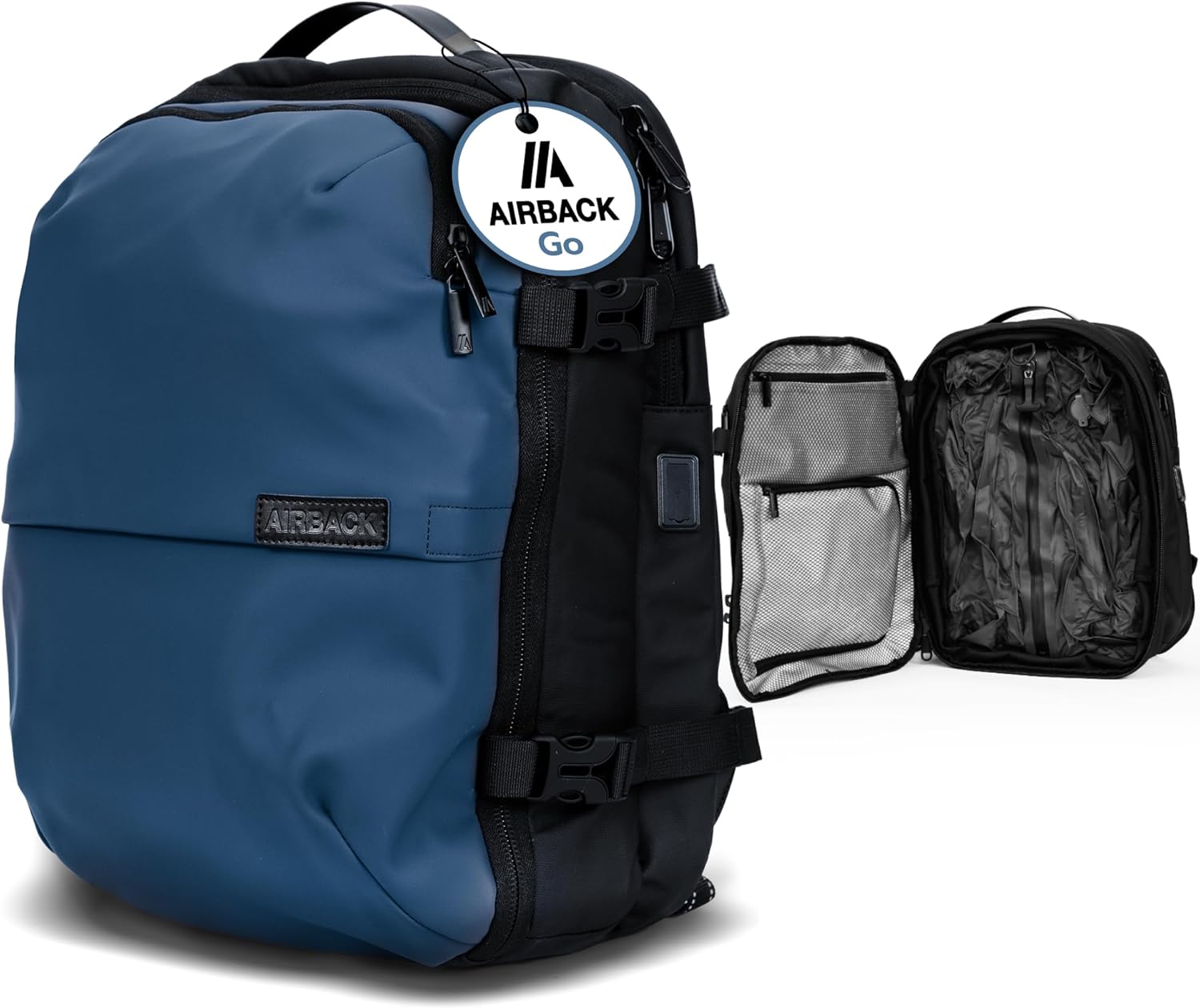 Airback Bolsa de Cabina, Sistema de vacío Integrado para Debajo del Asiento, para Viajes de Fin de Semana, se Adapta a Ryanair, Resistente al Agua y Puerto de Carga USB-C, AirbackGO Azul Marino