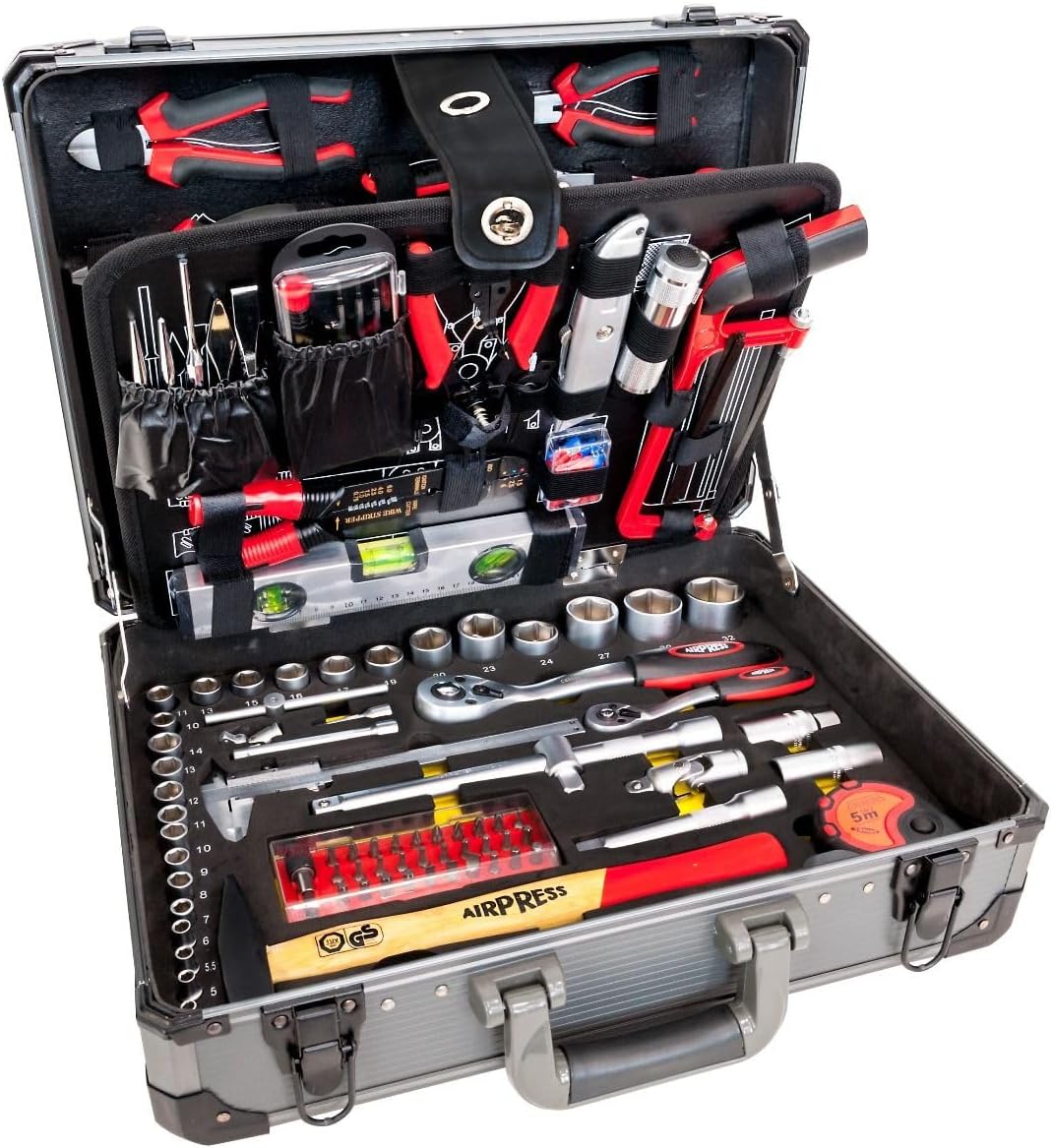 Airpress - Maletín de aluminio con kit de 127 herramientas de acero cromo-vanadio